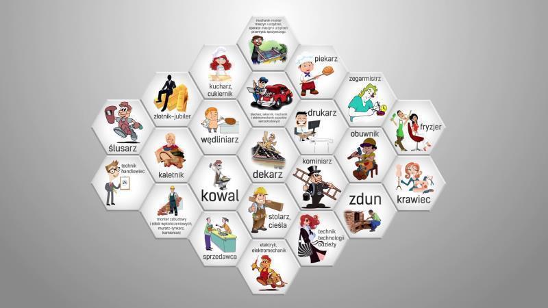 Uczniowie będą mogli kształcić się również w takich zawodach rzemieślniczych jak: blacharz samochodowy, cieśla, dekarz, elektromechanik pojazdów samochodowych, elektromechanik, elektronik, elektryk, fotograf, kaletnik, kamieniarz, kominiarz, kowal, krawiec, kucharz, lakiernik samochodowy, mechatronik, mechanik pojazdów samochodowych, monter stolarki okiennej, mechanik-monter maszyn i urządzeń, monter sieci i instalacji sanitarnych, monter zabudowy i robót wykończeniowych w budownictwie, murarz-tynkarz, obuwnik, operator maszyn i urządzeń przemysłu spożywczego, operator obrabiarek skrawających, piekarz, stolarz, ślusarz, tapicer, przetwórca mięsa, zegarmistrz, złotnik-jubiler. Wybierając jeden z tych zawodów będziesz uczniem klasy wielozawodowej, a kształcenie teoretyczne zawodowe realizować będziesz na corocznych miesięcznych kursach w Centrach Kształcenia Zawodowego na terenie kraju. Zdobycie któregokolwiek z zawodów wymienionych powyżej gwarantuje po ukończeniu szkoły i uzyskaniu kwalifikacji dobrze płatną pracę. Kształcenie zawodowe praktyczne odbywa się na podstawie umów o pracę w celu przygotowania zawodowego podpisanych przez uczniów (młodocianych pracowników) z pracodawcami rzemieślnikami. Wynagrodzenie młodocianego pracownika w klasie pierwszej to min. 678 zł., w klasie drugiej 762 zł., a w klasie trzeciej 847 zł.